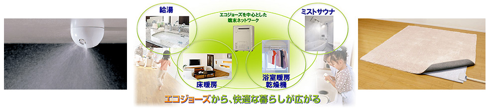 エコジョーズを中心にして、さまざまな端末ネットワークが家庭内に広がります。